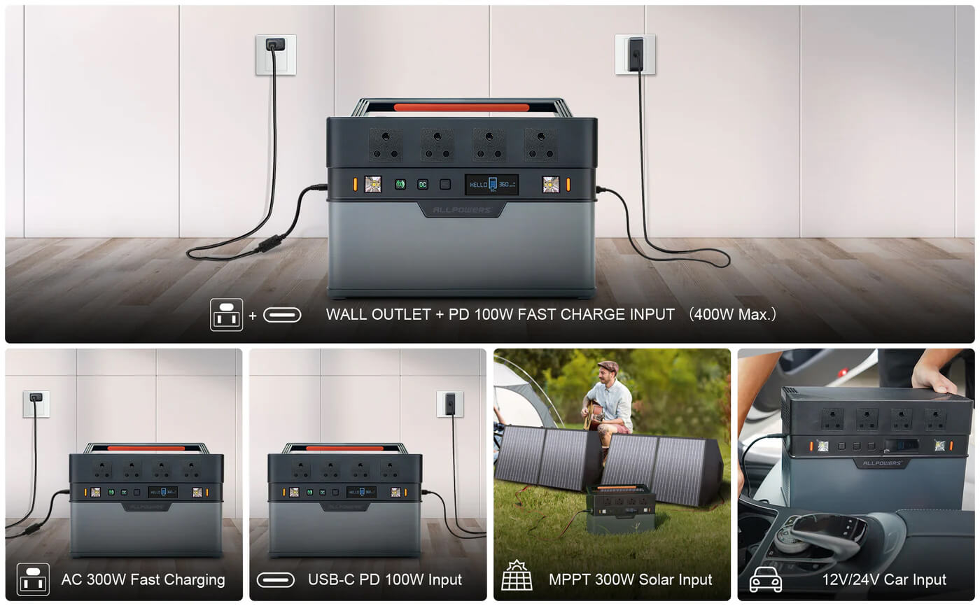 - 6 Ways to Recharge(AC/USB-C/AC+USB-C/Solar/Car/Solar+USB-C);
