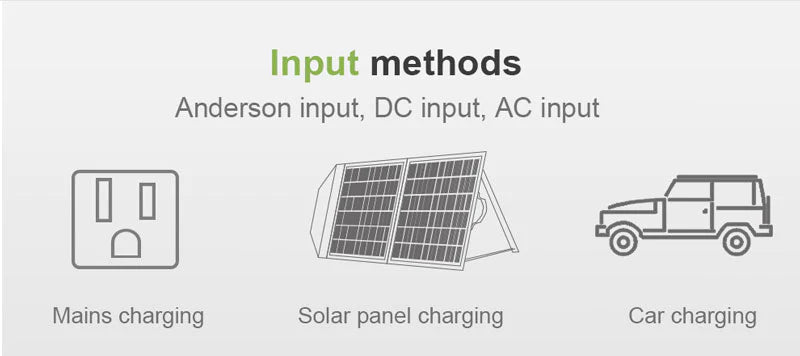 - Recharge from 0-100% in 1.5 Hours(AC+solar input);