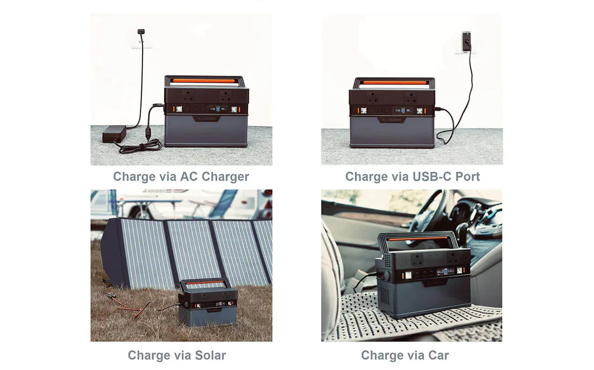 - 4 Ways to Recharge (AC/USB-C/Solar/Car/AC+Solar);