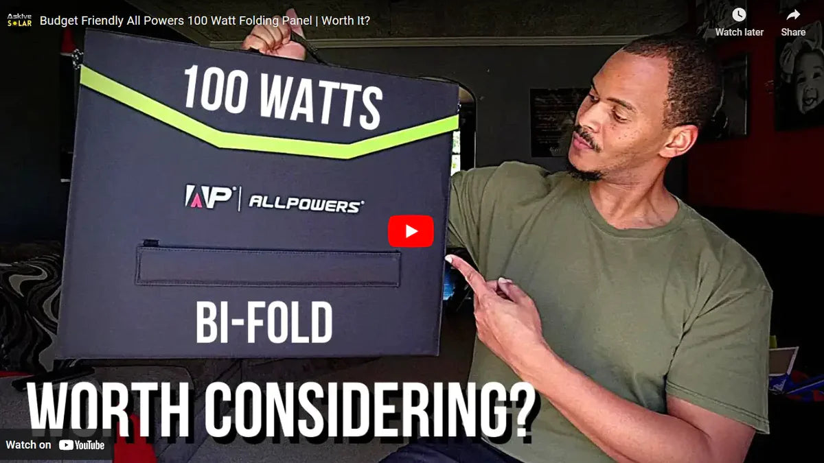 ALLPOWERS 100W portable solar panel kit is made from the US, up to 22% efficiency, 1/3 lighter than the same power of solar silicon. The total power increased by 1/3 in comparison with the same portable solar panel kit size.